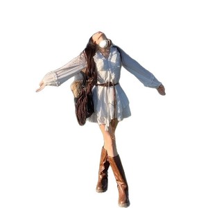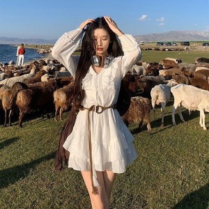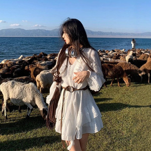 法式白色长袖连衣裙子女夏季2025新款新疆旅游度假风穿搭短裙早秋