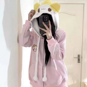 韩系2025小狗刺绣连帽长袖卫衣女春秋开衫新款慵懒风休闲情侣外套