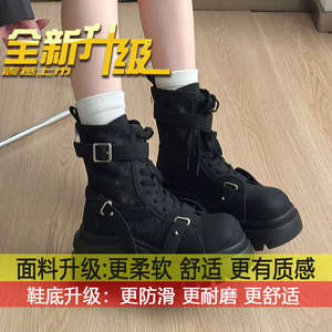 小个子高跟机车靴子女2025秋冬季新款中筒短靴厚底帆布大头马丁靴
