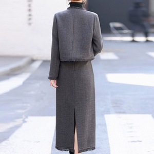 加绒加厚小香风套装秋冬新款气质修身半身裙外套两件套