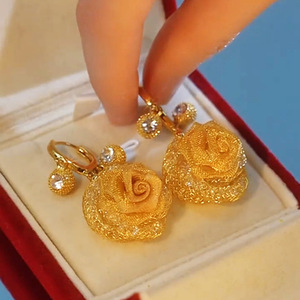 玫瑰花耳环女轻奢时尚高级感爆款网状耳扣新款气质小众耳饰潮饰品