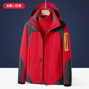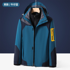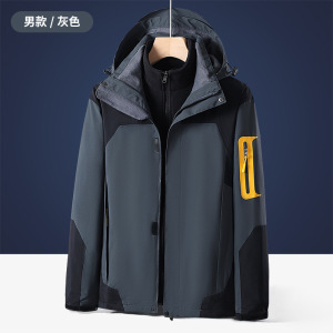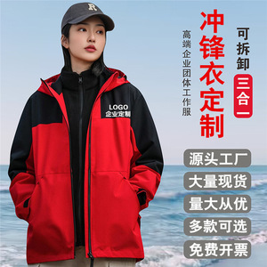 秋冬加绒冲锋衣三合一工作服印字绣logo团体班服户外可拆加绒外套