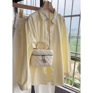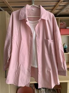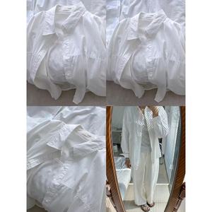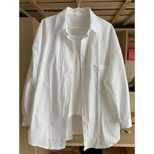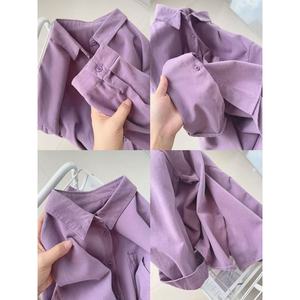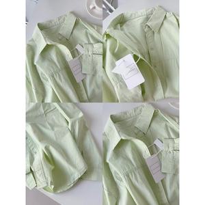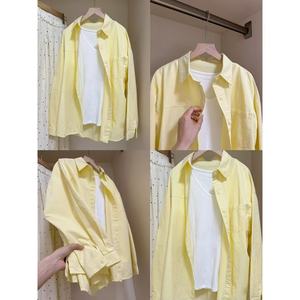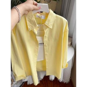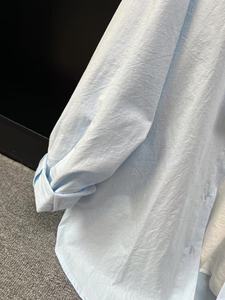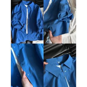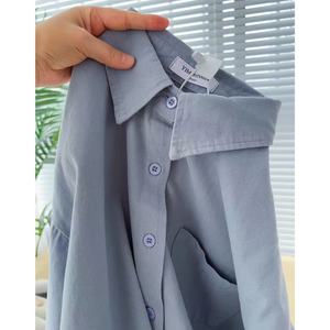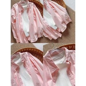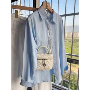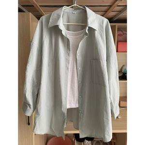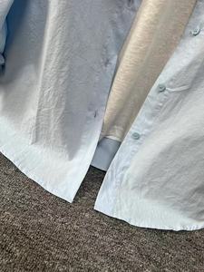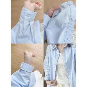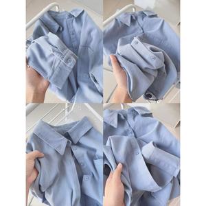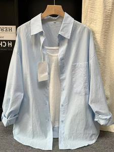 多巴胺纯棉蓝色衬衫外套夏季薄款宽松百搭遮肉长袖衬衣防晒衫外穿