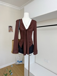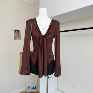辣妹绑带针织长袖内搭秋松弛设计感修身显瘦上衣2025秋季新款
