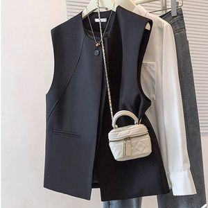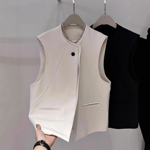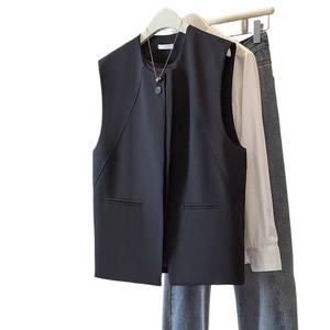法式洋气女士西服马夹2025春秋新款宽松西装圆领马甲背心外穿上衣