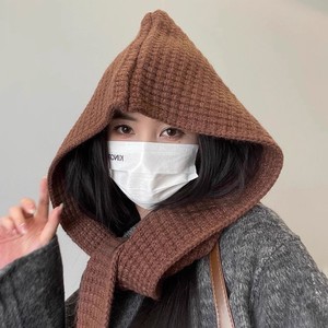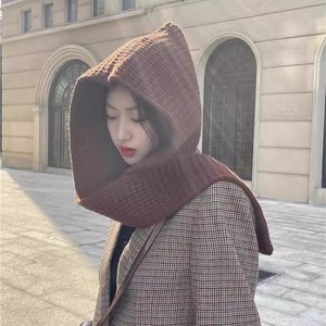 冬季帽子围巾一体两件套纯色保暖两用针织帽斗篷百搭时尚连帽披肩