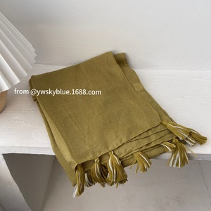 春秋民族风落日橘棉麻围巾云南沙漠旅游拍照沙滩巾氛围感薄款披肩
