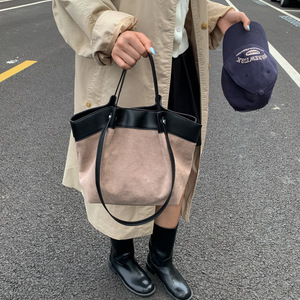 2025秋新款韩版复古手提单肩包小众时尚设计帆布拼接大容量托特包