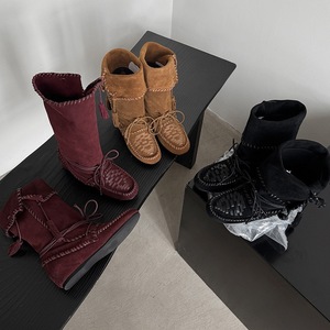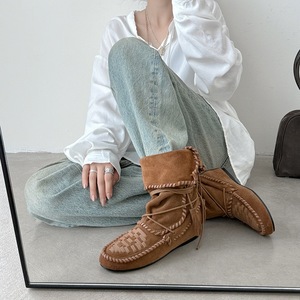 2025年秋冬季内增高编织女靴时装鞋短筒靴子流苏靴中筒靴