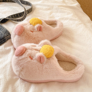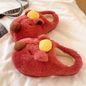 可爱卡皮巴拉棉拖鞋女冬季室内居家毛绒保暖包头防滑厚底外穿拖鞋