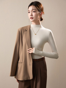 半高领打底衫女2025新款春秋季内搭咖色长袖t恤早秋修身针织上衣