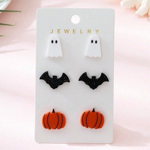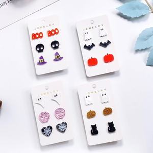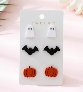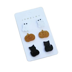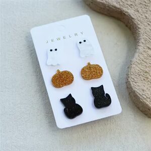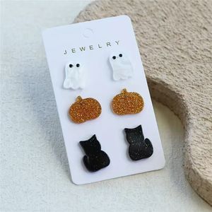 万圣节耳钉三件套亚克力幽灵南瓜猫可爱耳环欧美跨境耳饰批发女