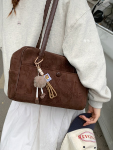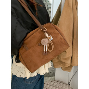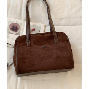 复古大容量腋下通勤包女士包包2025新款麂皮绒托特包单肩公文包