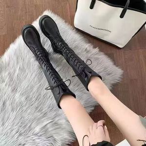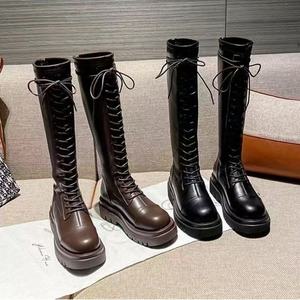 马丁靴黑色显瘦系带高筒靴不过膝长筒骑士靴女2025年新款皮长靴男
