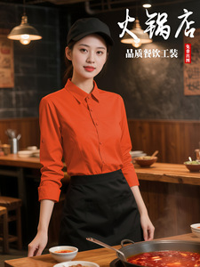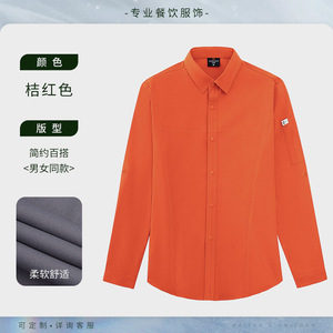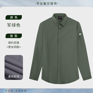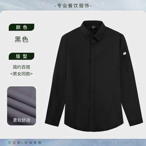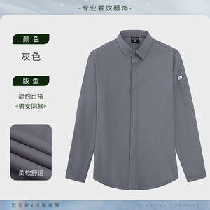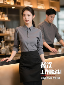 餐饮工作服秋冬长袖衬衫印logo奶茶咖啡店西餐厅服务员衬衣工作服