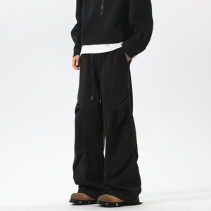 美式斜切重磅伞兵卫裤男秋季cleanfit褶皱设计感运动休闲工装长裤