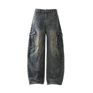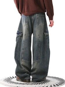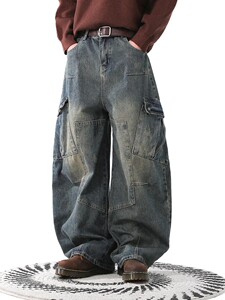 重磅多口袋弯刀解析牛仔裤男女微喇炸街阔腿直筒工装长裤美式水洗