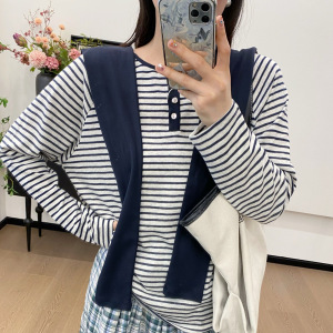 25秋新海军领圆领条纹针织衫/披肩两件套 万能衫 !082e705