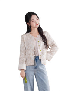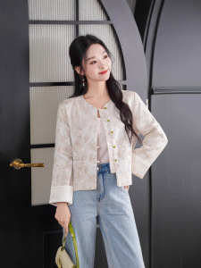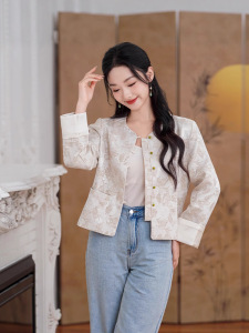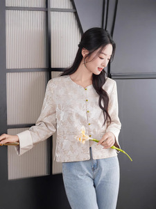 秋季新中式国潮提花圆领改良盘扣开衫外套唐装民族风显瘦长袖上衣