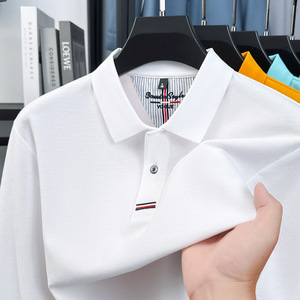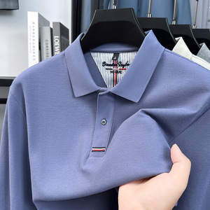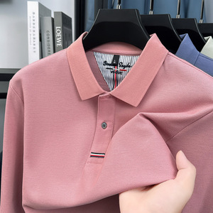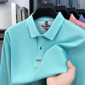 2025秋季100%丝光棉轻商务时尚长袖t恤衫休闲百搭翻领男士polo衫
