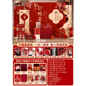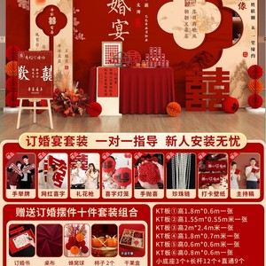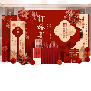 订婚布置装饰全套板背景墙新中式定 制用品摆台件场景背景板