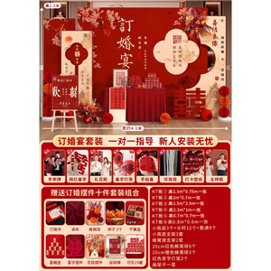 【2.2m高花艺大全套款】甜蜜佳缘订婚全套摆件+定制可乐+迎宾牌+礼金箱+干果盒+柿子