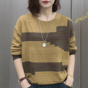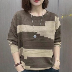 圆领拼色薄款毛衣打底衫秋装新款宽松遮肉上衣洋气百搭套头针织衫