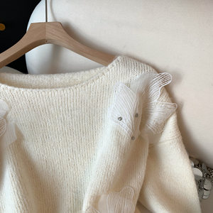 广州十三行高货爆款~钉珠镶钻立体羽毛软糯毛衣秋冬氛围感上衣女