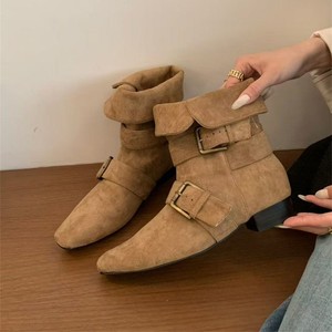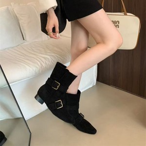 2025秋冬新款短靴女复古磨砂皮带扣中筒靴显瘦粗跟马丁靴ins潮
