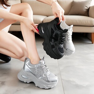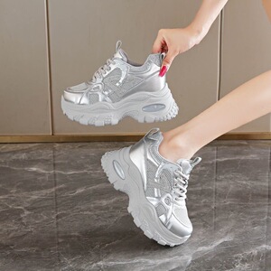 老爹厚底内增高单网面透气时尚女鞋2025秋季新款踩屎感运动休闲鞋