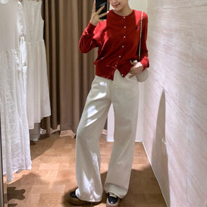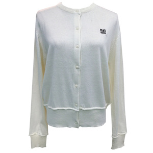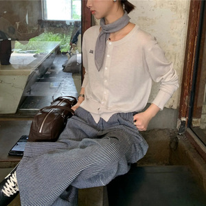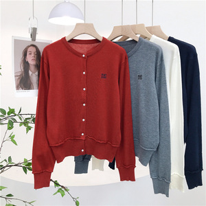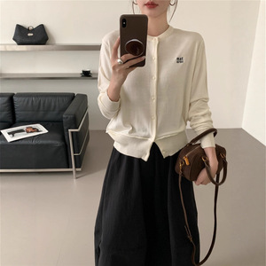 8212白色字母刺绣开衫秋季新款韩系清冷羊毛混纺圆领排扣收腰上衣
