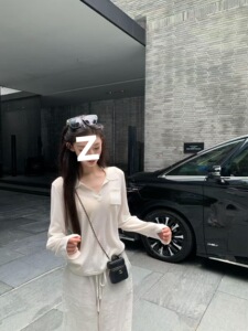 白色polo领长袖针织衫女秋季2025新款慵懒风宽松休闲百搭内搭上衣