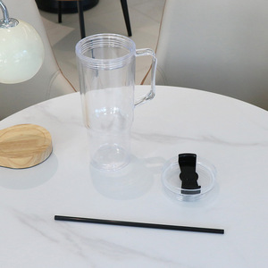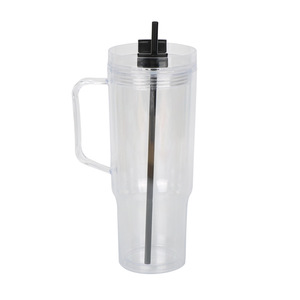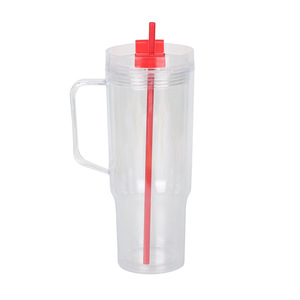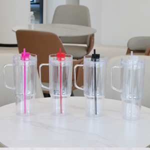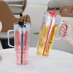 跨境网红款大容量冰霸杯PS材质运动塑料吸管杯双层DIY可加闪粉杯