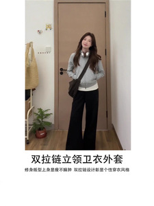 灰色双拉链卫衣外套.