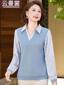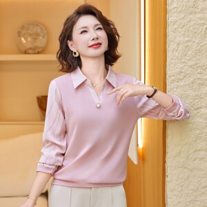 中年妈妈秋装洋气衬衫上衣2025新款中老年女装时尚长袖翻领T恤衫