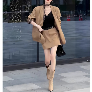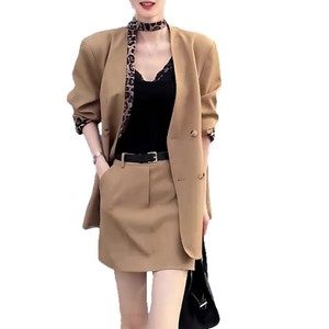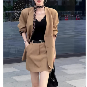 早秋2025新款高级感宽松款气质豹纹拼接西装外套高腰短裙套装女装