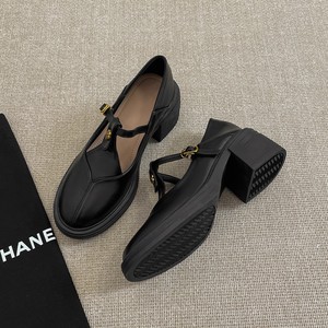 山茶花乐福鞋女2025新款高跟圆头黑色小皮鞋日系jk英伦风玛丽珍鞋
