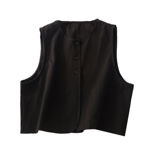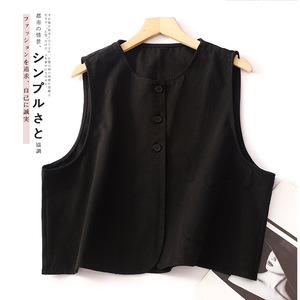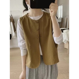 短款马夹女春秋新款宽松显瘦圆领小众设计感简约棉质复古工装背心