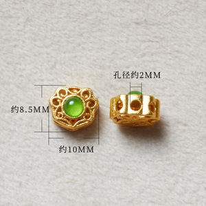强保色铜镀金镶嵌碧玉色石如意饰品diy配饰隔珠手串散珠首饰配珠