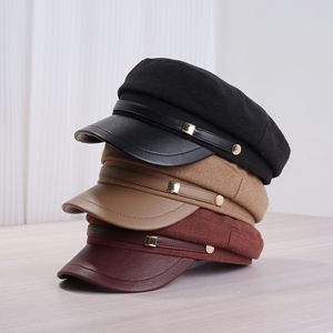 韩版新款方扣皮带鸭舌帽女秋冬季百搭报童帽英伦风复古显脸小帽子