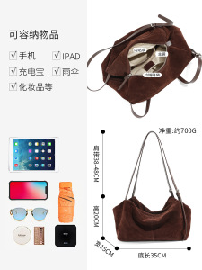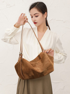 热销女包小众通勤百搭麂皮托特包 磨砂牛皮大容量单肩腋下枕头包