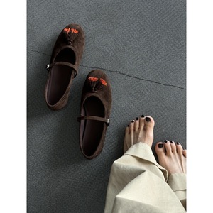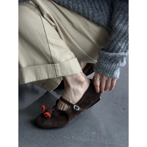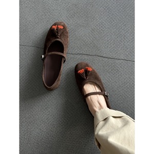 羊皮版~真皮复古绒面一字扣流苏玛丽珍鞋女百搭芭蕾平底浅口单鞋