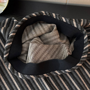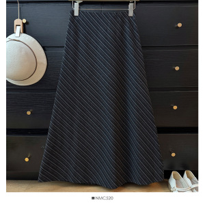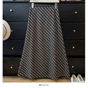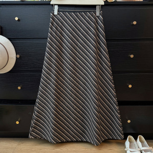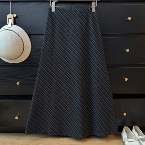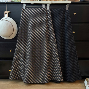 秋季2025女复古气质斜条纹毛呢半身裙高腰显瘦A字垂坠感大摆裙