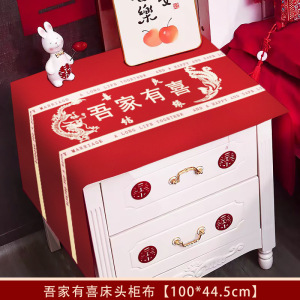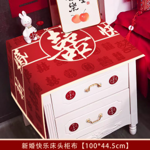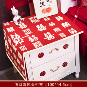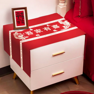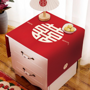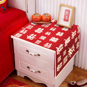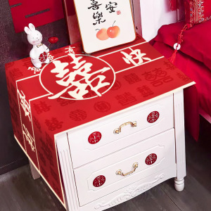 结婚床头柜盖布红色喜庆婚房装饰布置桌布喜事婚礼盖布卧室防尘罩