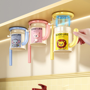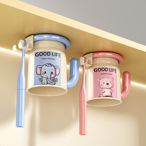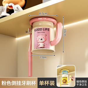 多巴胺镜柜磁吸手柄漱口杯置物架免打孔一家四口倒挂沥水洗漱收纳