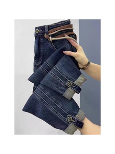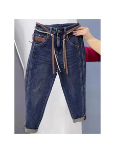 大码弹力哈伦牛仔裤女春夏胖mm小个子高腰显瘦九分直筒萝卜老爹裤