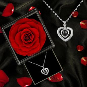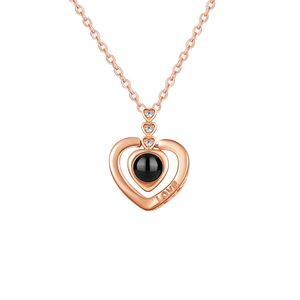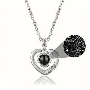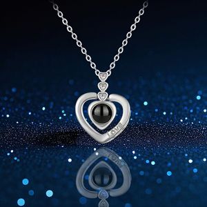 跨境Ozon爆款心形吊坠100种我爱你语言投影项链女气质百搭锁骨链