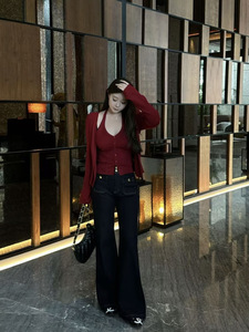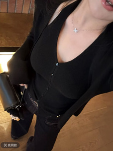 2025微微胖大码女装法式设计感慵懒时尚薄款毛针织开衫+挂脖吊带