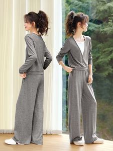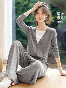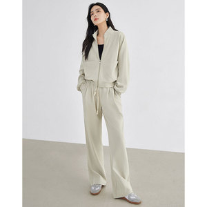 哥家商场同款女装2025秋季慵懒风撞色拼接V领T恤休闲裤宽松两件套