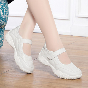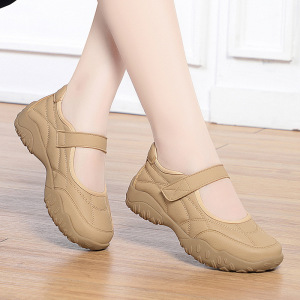 一件代发软皮软底妈妈鞋子春秋休闲舒适单鞋轻便魔术贴中老年女鞋